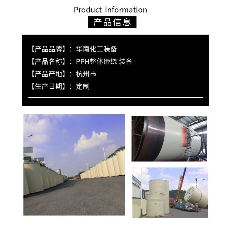 PPH integral winding vertical storage tank is a series of equipment independently developed by our company. It has always attached importance to the performance and quality requirements of raw materials and jointly developed high-end new equipment with Peking University, Zhejiang University, and Zhongnan University. The raw materials for Nordic Chemical and Sinopec are made to the highest quality, and the color masterbatch depends on Merck.