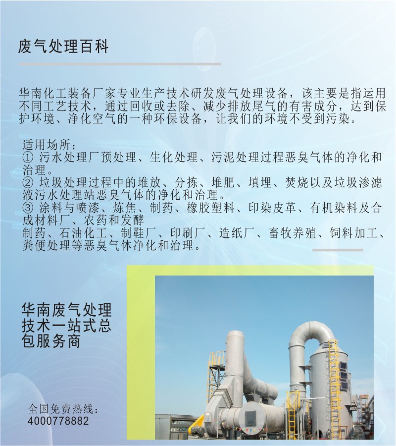 浙江華南化工裝備食品廢氣處理方案優(yōu)點(diǎn):適用于處理低濃度,高凈化要求的惡臭氣體,凈化效率很高,可以處理多組分惡臭氣體。